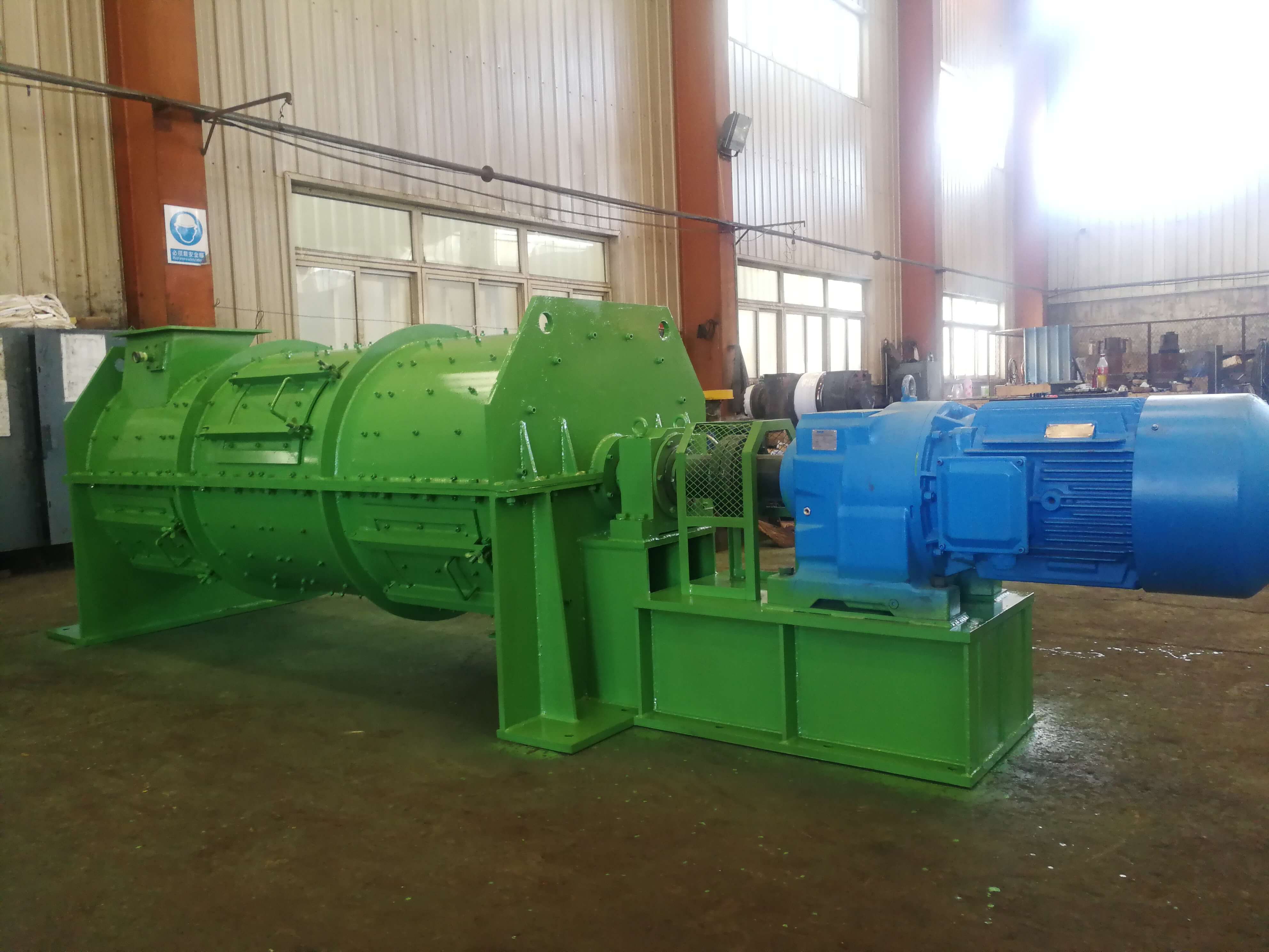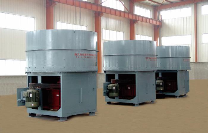 HSD 系列混砂機(jī)由30kW-55kW電機(jī)提供動(dòng)力,經(jīng)減速機(jī)或傘齒輪傳動(dòng)使碾盤以主軸為中心公轉(zhuǎn),碾輪靠物料磨擦自轉(zhuǎn)。主要特點(diǎn)是價(jià)格低廉、使用方便,但對物料破碎、揉搓、壓實(shí)等功效比濕碾機(jī)差。