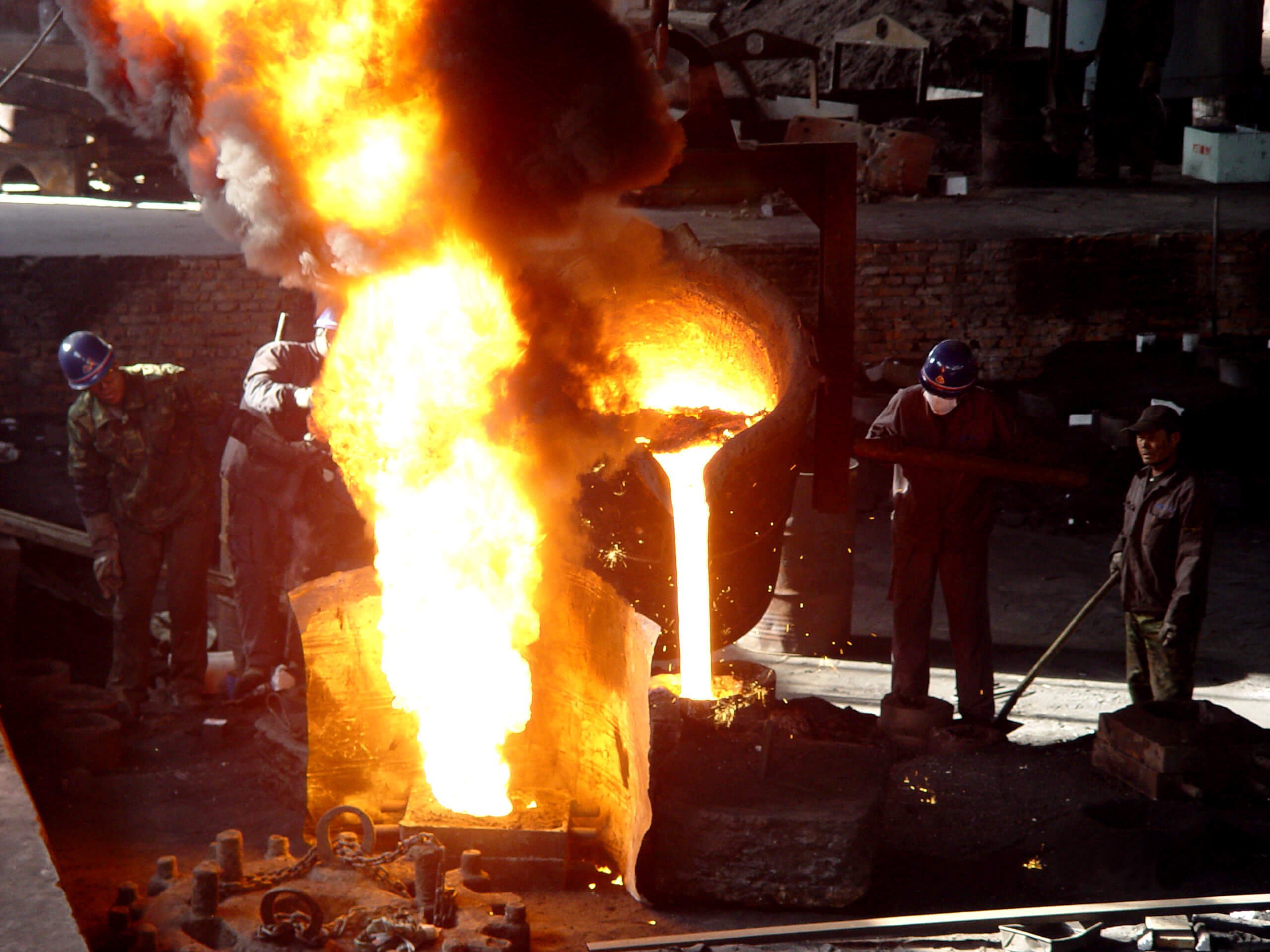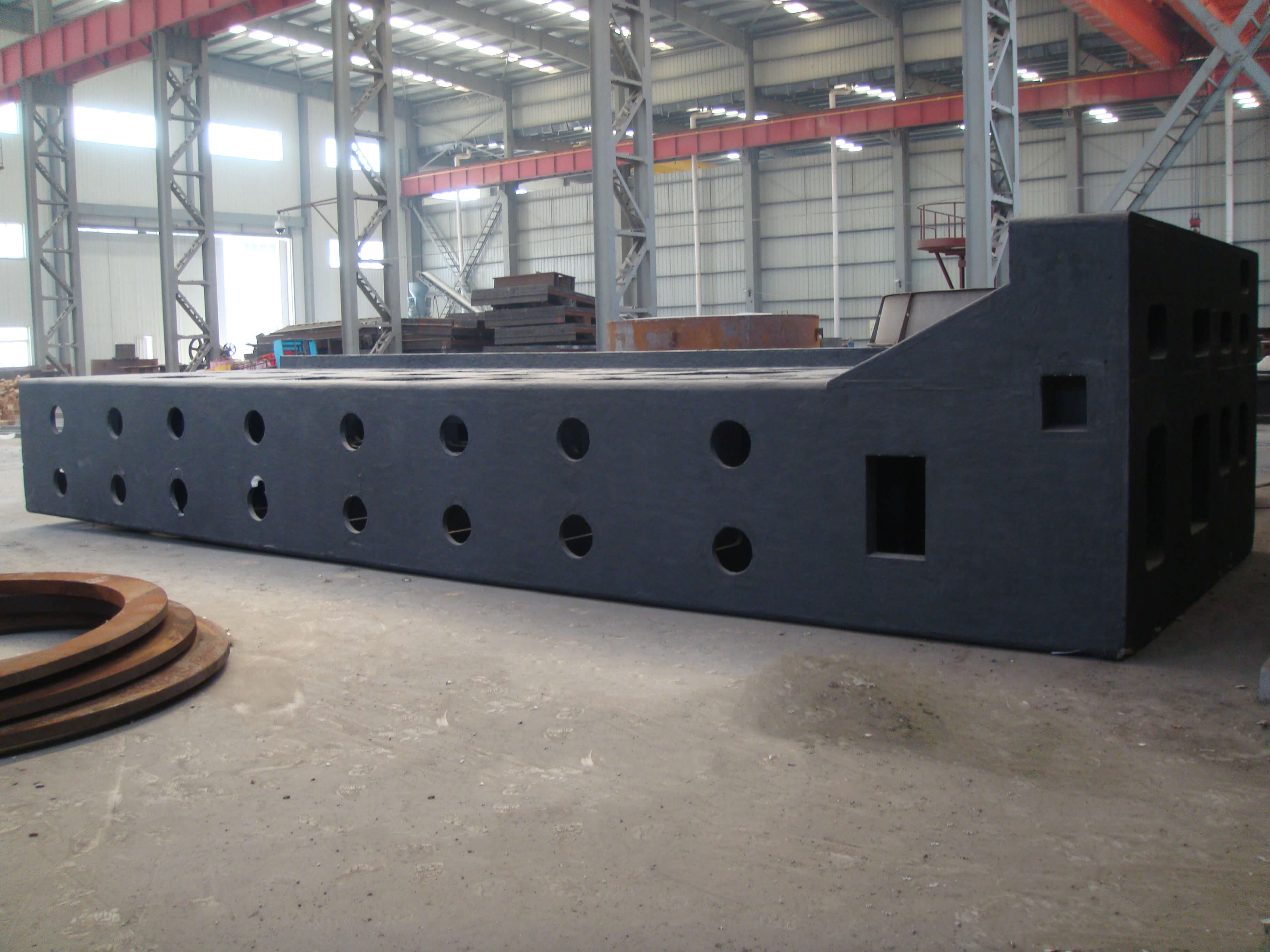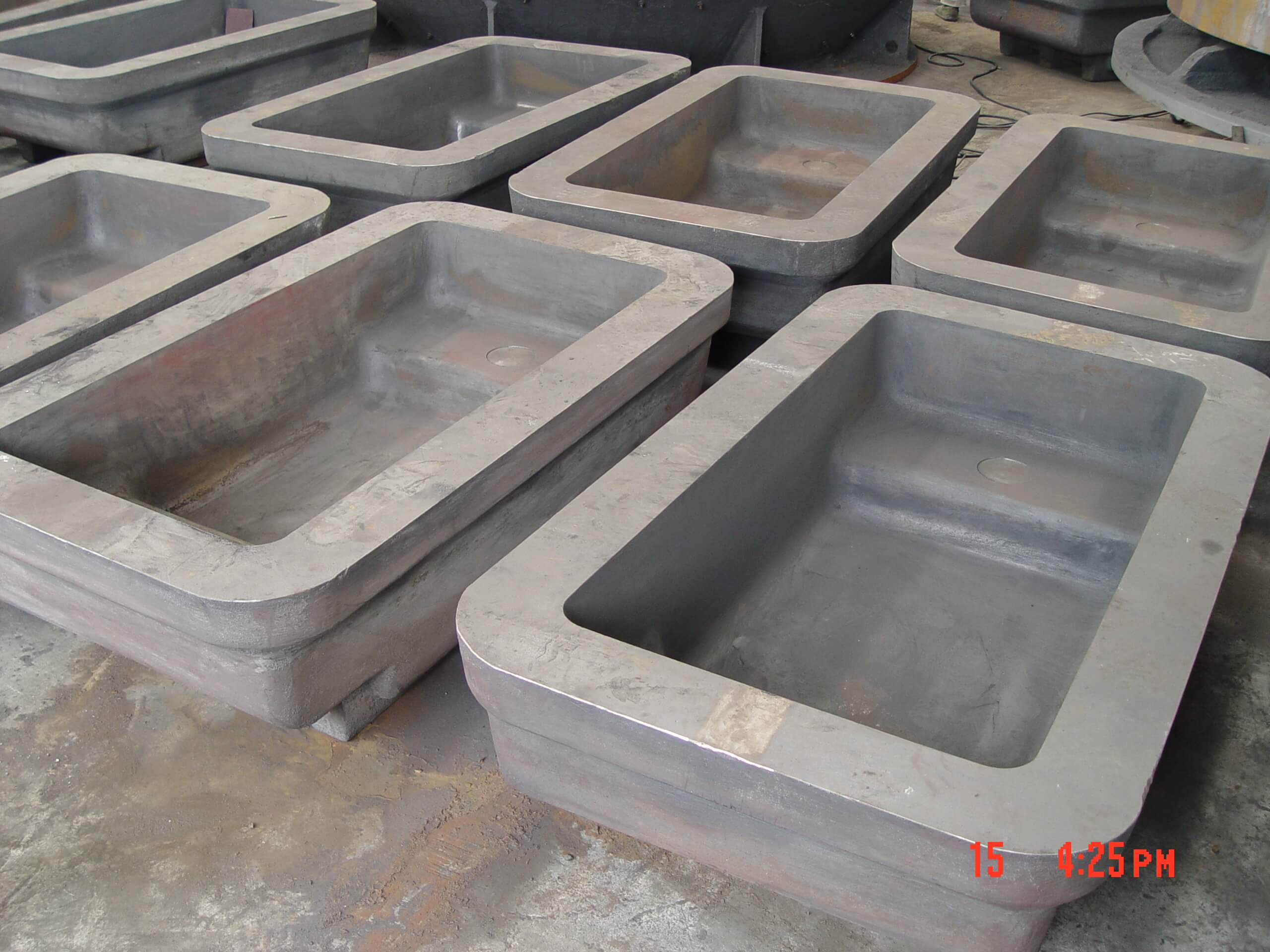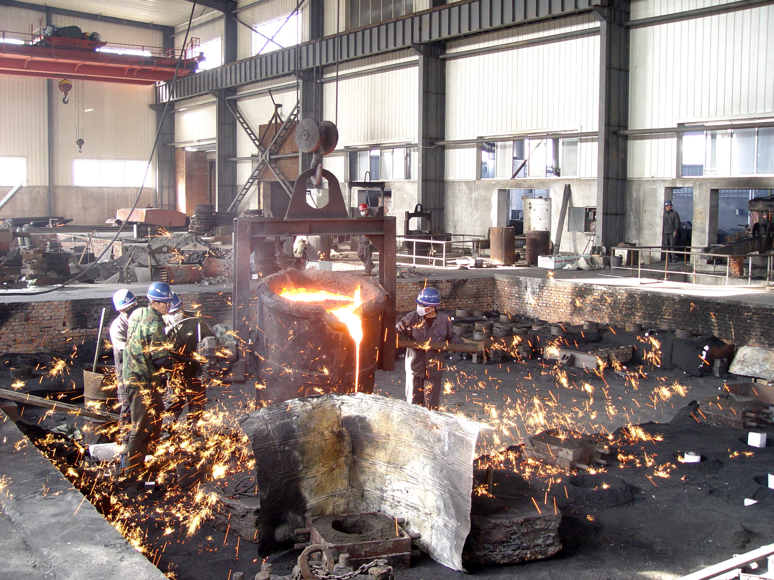 建筑面積7420平方米,50t吊車1臺(tái),20t吊車1臺(tái),10吊車4臺(tái)。擁有7t中頻爐1座;5t中頻爐1座;3t中頻爐1座;1t中頻爐1座;10t沖天爐1座;4m×3m×1.8m干燥窯;5t/h樹脂砂再生系統(tǒng)4套,V法生產(chǎn)線1套;3t沖天爐1座;干燥窯2個(gè),PW3000×2500×6000拋丸機(jī)1臺(tái);HY-2200振動(dòng)時(shí)效機(jī)2臺(tái);全譜直讀光譜儀1臺(tái);WAW-600B電液伺服萬(wàn)能試驗(yàn)機(jī)1臺(tái);JB-300B半自動(dòng)沖擊試驗(yàn)機(jī)等。