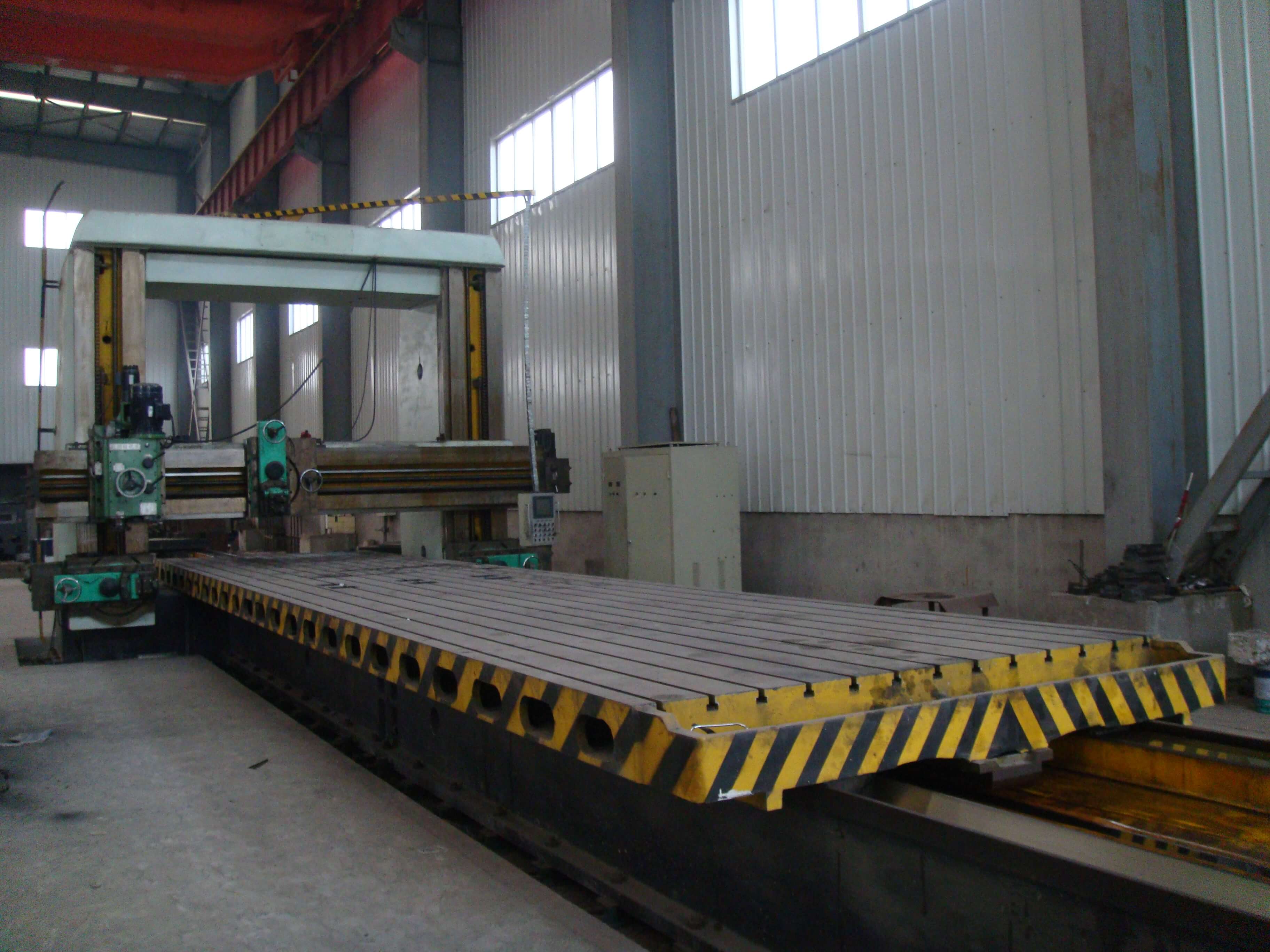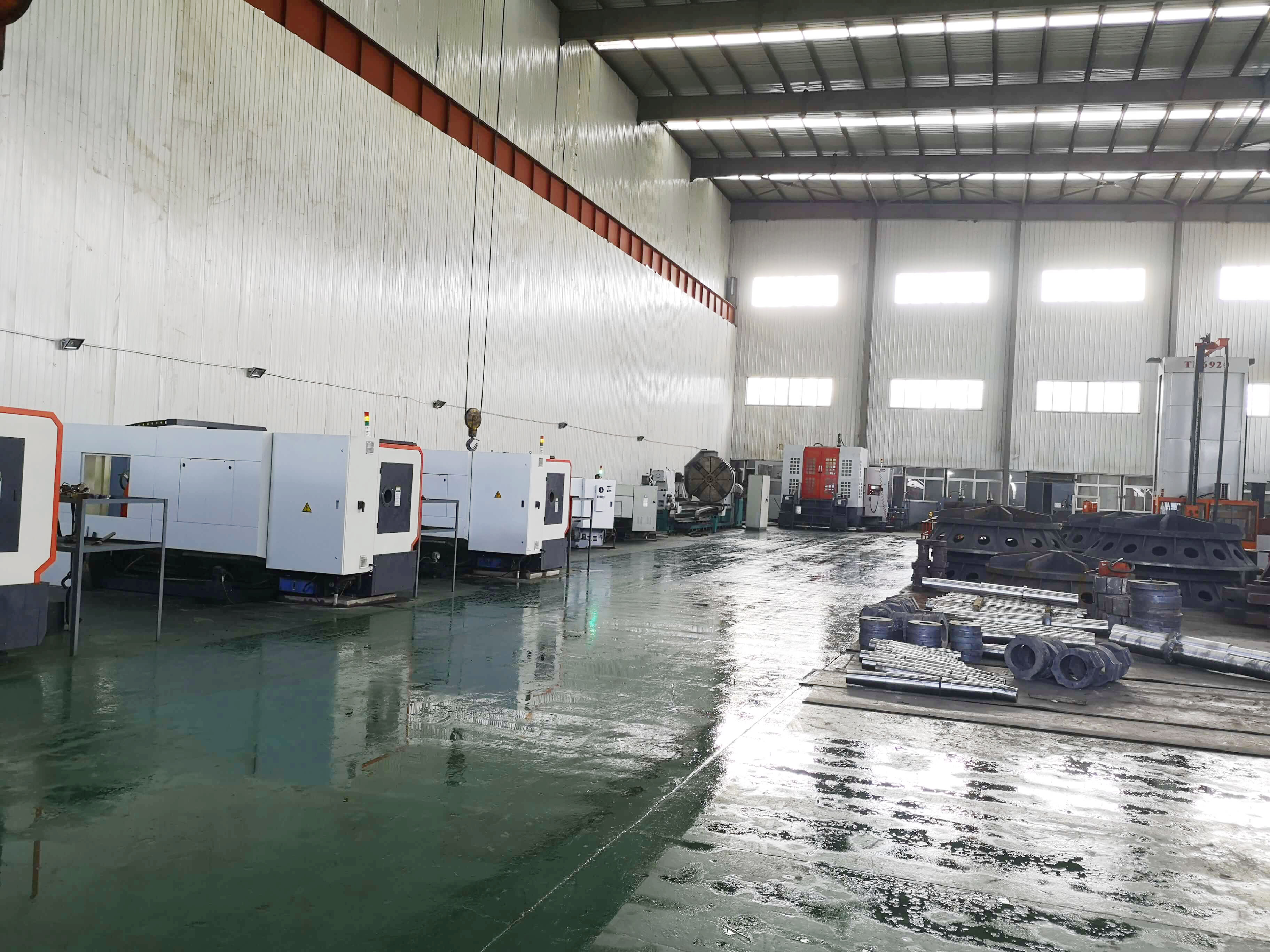 總建筑面積8290平方米,50t吊車2臺(tái),20t吊車1臺(tái),10t吊車5臺(tái)。擁有冷加工設(shè)備68臺(tái)套,包括TK6920-120-50重型數(shù)控落地銑鏜床,HC1200A臥式數(shù)控加工心,CKD61210/5000mm數(shù)控臥式車銑專機(jī)1臺(tái);12m×2.5m重型刨銑磨床1臺(tái);?200落地鏜床1臺(tái);TPX6113鏜床1臺(tái);T6111鏜床1臺(tái);立式車床4.0米、2.5米、1.25米、0.8米等10臺(tái);CAK系列數(shù)控車床6臺(tái)套;CW61100普車3臺(tái);CW6280B普車3臺(tái);滾齒機(jī)、插齒機(jī)、線切割、平面磨床等;